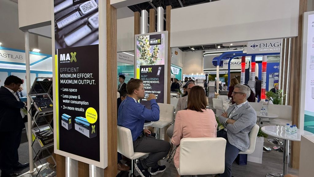 Visitors to the stand explored a wide range of diagnostic technologies designed to support everyday laboratory work. These included Eurospital EU Turbo, Vircell VirClia Lotus, FebriDx, Alegria 2, SD Biosensor TB kits, Lactofan, Bioneer ExiStation and ExiPrep, and Amplex Eazyplex. Demonstrating the systems in person opened space for honest conversations about daily challenges inside the lab, practical efficiency, and where diagnostic services across the region are heading.